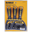 Ideal soft grip handled set of joint knives in 4", 5", and 6" blade widths. Each knife is equipped with alloy metal hammer end for resetting nails and providing improved drop protection from higher altitudes. Each blade has a precision hollow grind to give proper flex midway up the blade.