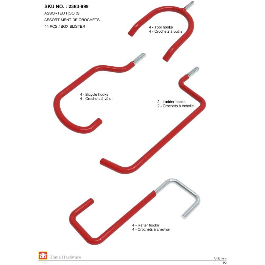 Red Storage Hooks - Assorted Styles 14 Pack