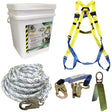The WorkHorse® roofers kit provides a single worker with everything he or she needs to be safe on the job. This kit includes a full body harness, 2' shock absorbing lanyard attached to a rope grab and a 50' life line rope all packaged in a reusable bucket.