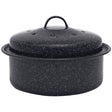 Granite Ware roasters are at the center of any holiday meal or special gathering. This roaster holds up to a 3lb. poultry or roast. Granite Ware roasters have a strong carbon steel body perfect for absorbing and distributing heat evenly and quickly. The dark surface absorbs the oven’s energy, lowering cooking times. The porcelain surface is non-porous and naturally non-stick. Safe for metal utensils, easy to clean, and dishwasher safe!