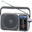 Add a retro-cool element to your audio needs with this portable radio from Panasonic. It has a 70s-style band indicator on the tuning display. You won't miss the best tunes since the ferrite bar antenna picks up all your favourite stations. This portable radio has a 10cm speaker that delivers quality sound. The folding handle and cordless design makes it easy to transport or store. It requires four AA batteries (not included).