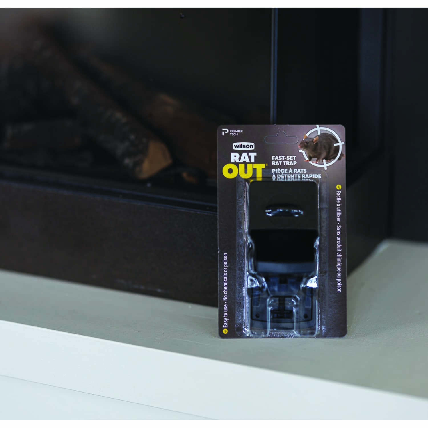 WILSON® Predator(TM) Fast Set Rat Trap is a professional strength device designed to effectively kill rats indoors. This product is reusable and simple to use, and it will help rid you of rats in problem areas such as attics, inside walls, basements, garages, garden sheds, barns and more. No need to touch the dead rodent, when a rat is caught, simply open the trap to release it into the trash. Please note, this product does not include bait.
