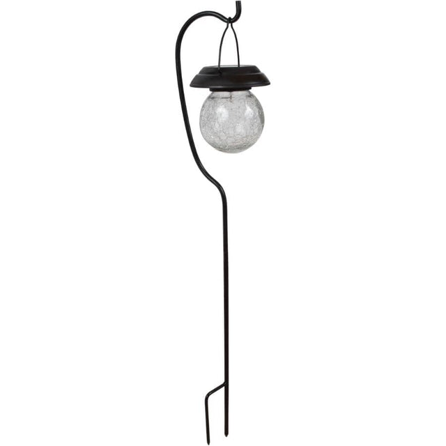 Redefine your lawn with this Solar glass Filament Hanging Light with Shepherds Hook. This light is interchangeable and can be used both in your garden or on your tabletop as décor. This light will illuminate wherever it is placed with a soft warm white light.