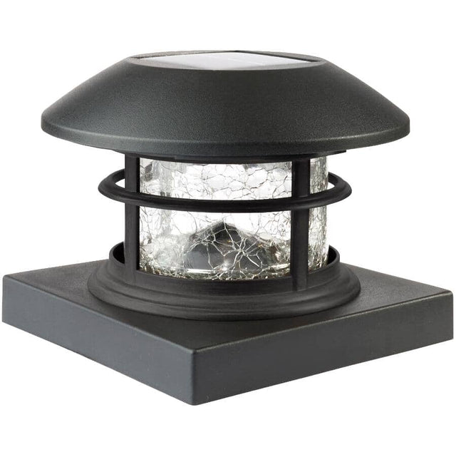 This Solar Post Cap Light features the most up to date styling with a round top design, square base and combination of black finish. Featuring 1 warm white LED providing 15 lumens of light output, this post cap light will be sure to accentuate the fence or deck posts in your yard. Fits 3.5", 4", 4.5" and 5" posts, is very easy to install and includes all mounting hardware.