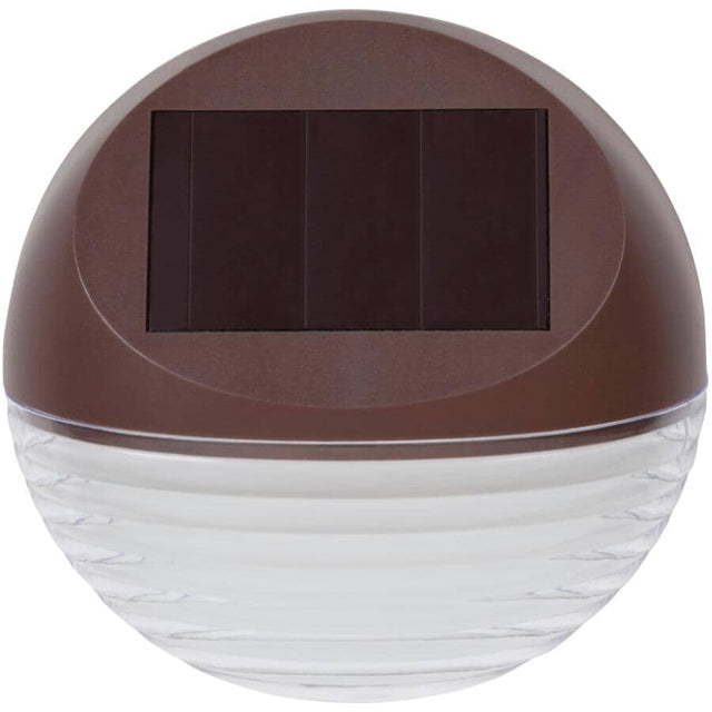 This Solar Wedge Light has a large diameter size of 4.4 inches, is constructed of durable plastic and features a clear lens with horizontal ribbed design. Each light has 2 warm white LEDs and produces 4 lumens of light output light, and includes all mounting hardware. The back of the light has a flat surface for easy flush mount installation. This is a very attractive design that will light up nicely at night and is also appealing during the day.