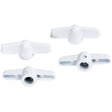 This 4-pack of T-handle casement window cranks comes in a white painted finish. Also known as butterfly cranks, they have a discreet profile and neatly hug the window sill making them ideal for casement windows with blinds. This casement operator T-handle is designed to fit a 11/32" spline shaft. To install, simply snap into place and gently tighten the set screw.