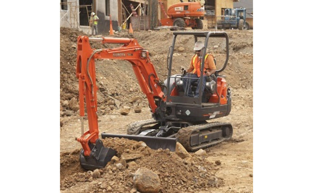 The Kubota KX91-3 is a compact excavator engineered for precision digging and material handling in confined spaces. Weighing 3.5 tons, this machine delivers impressive power with a fuel-efficient engine and responsive hydraulic controls. The fully enclosed cab provides operator comfort and protection from the elements during extended work sessions. Its tight turning radius and excellent visibility make it ideal for landscaping, utility work, and small-scale construction projects. The durable undercarriage and proven Kubota reliability ensure consistent performance across demanding jobsites.