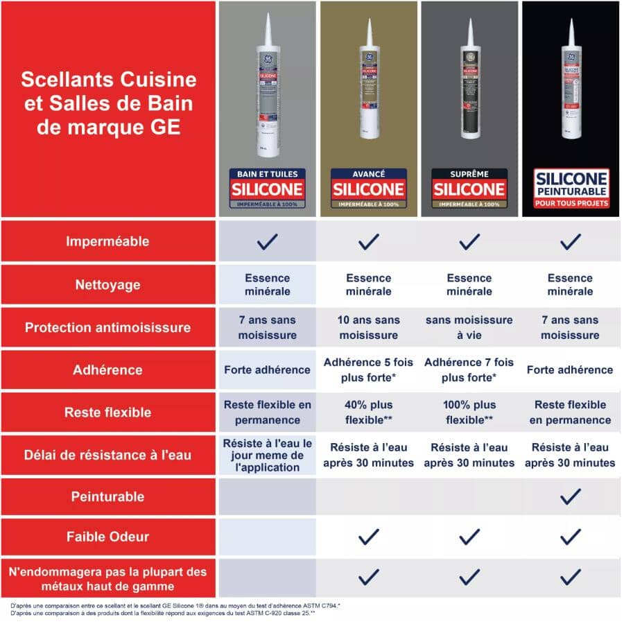 GE Tub and Tile Silicone 1 Sealant is a 100% silicone, 100% waterproof sealant ideal for areas susceptible to moisture, such as sinks, tubs, showers, fixtures, countertops, backsplashes, and other plumbing projects. Tub and Tile Silicone 1 offers permanent flexibility and strong adhesion, and it’s designed to be resistant to shrinks and cracking. Plus, GE Tub and Tile Silicone 1 Sealant resists mould and mildew growth—it’s backed by a mould-free product protection for seven years--to prevent unsightly stains. Use our silicone bathroom sealant on a variety of common surfaces, including most metals, plastics, and woods; glass, drywall, plaster, granite, and more.
