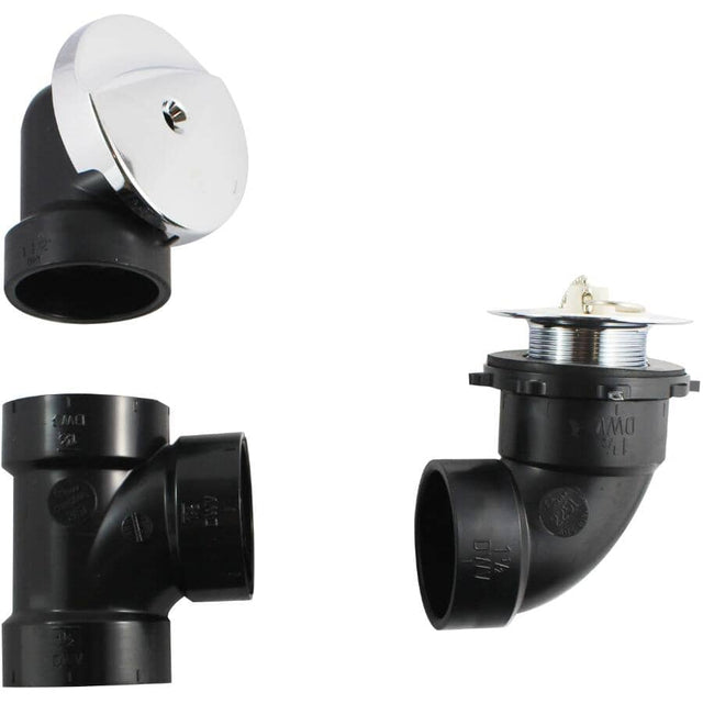 Installed in a 1-1/2″ ABS DWV drainage system under a bathtub to allow for bath drainage and protection against overfilling. Connection to the drainage system can be either vertical or horizontal from the bottom of the overflow drain or vertically beneath the tub drain.