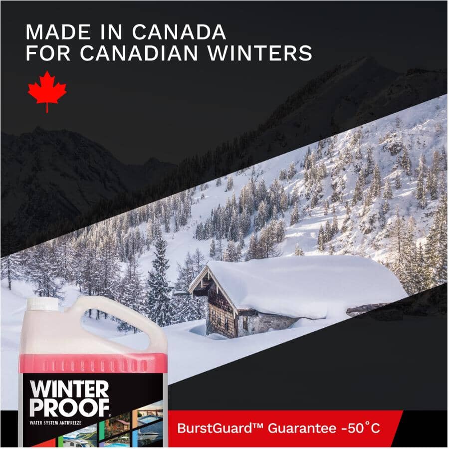 Trusted by seasonal recreationalists, this water system antifreeze will have you winterizing your waterlines and pipes, so you can head into summer without any hassles or costly repairs. It features the BurstGuardTM guarantee for total water system protection to -50°C. A non-toxic plumbing antifreeze, it protects the pipes from bursting and waterlines from expanding and cracking in your RV, vacation home, swimming pool, hot tub, boat or septic system. Safe for plastic and metal piping systems, it has corrosion inhibitors and it also lubricates waterlines, pipes and seals. You can winterize your investments with all the confidence you need to stop ice cold.