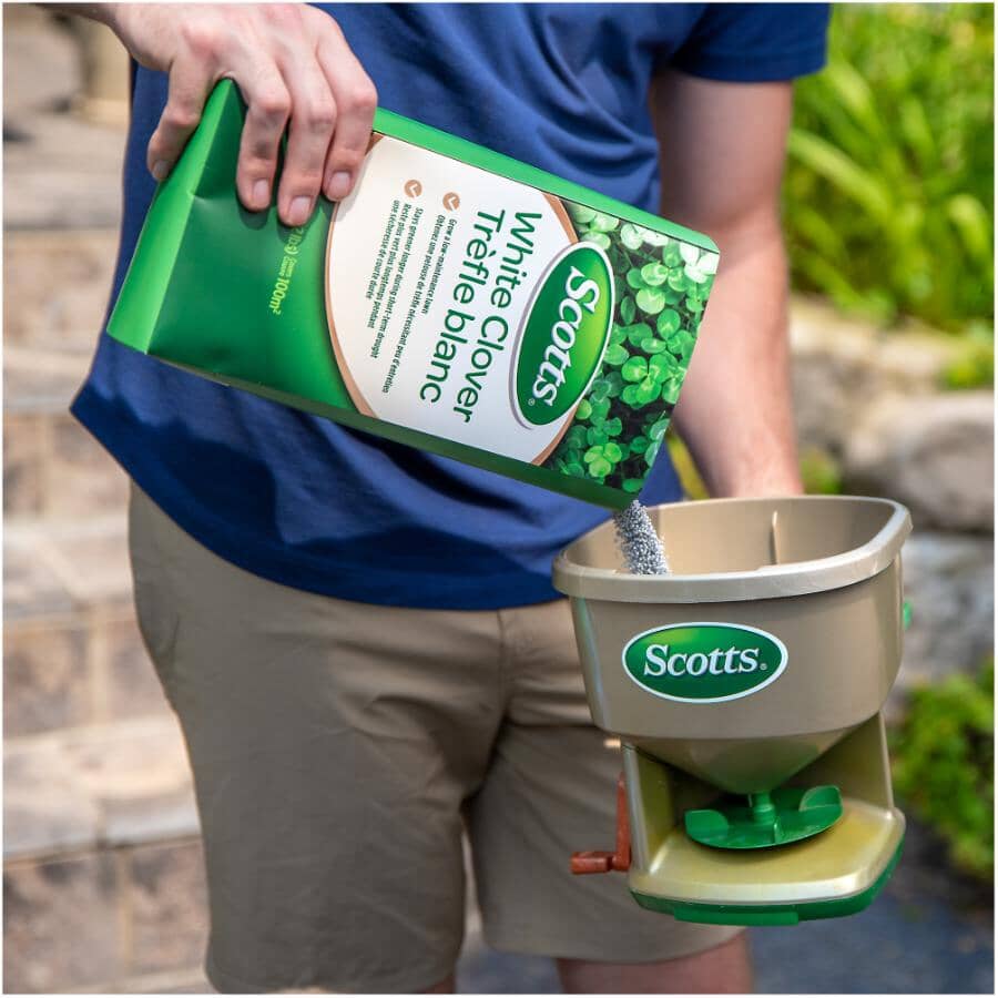 Scotts® White Clover is a perfect option for a healthy and low-maintenance lawn. White clover requires less water, mowing, and fertilization compared to the use of typical grass seed, making it a great addition to your lawn. It self-fertilizes when the clippings are returned to the lawn after mowing, reducing maintenance work and with seeds that are coated with natural limestone, makes it easy to spread using a hand spreader. Clover begins to grow in 5-7 days and is best seeded in early spring or fall when soil temperatures are between 10°C to 18°C. Ideal for lawns, garden beds, and areas with poor soil, white clover thrives in full sun to partial shade and well-draining soil.