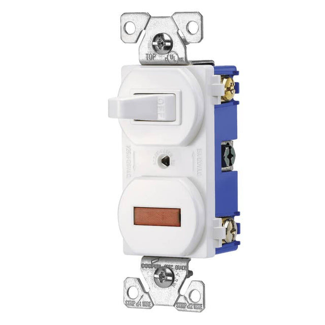 Eaton Combination Devices provide 2 devices in a single gang box with decorator or traditional styling. Our broad line of combination devices encompasses switches, receptacles, pilot lights and nightlights. Bathrooms, kitchens, basements and hallways are all locations that often require or can benefit from a space savings and convenience of combination device.