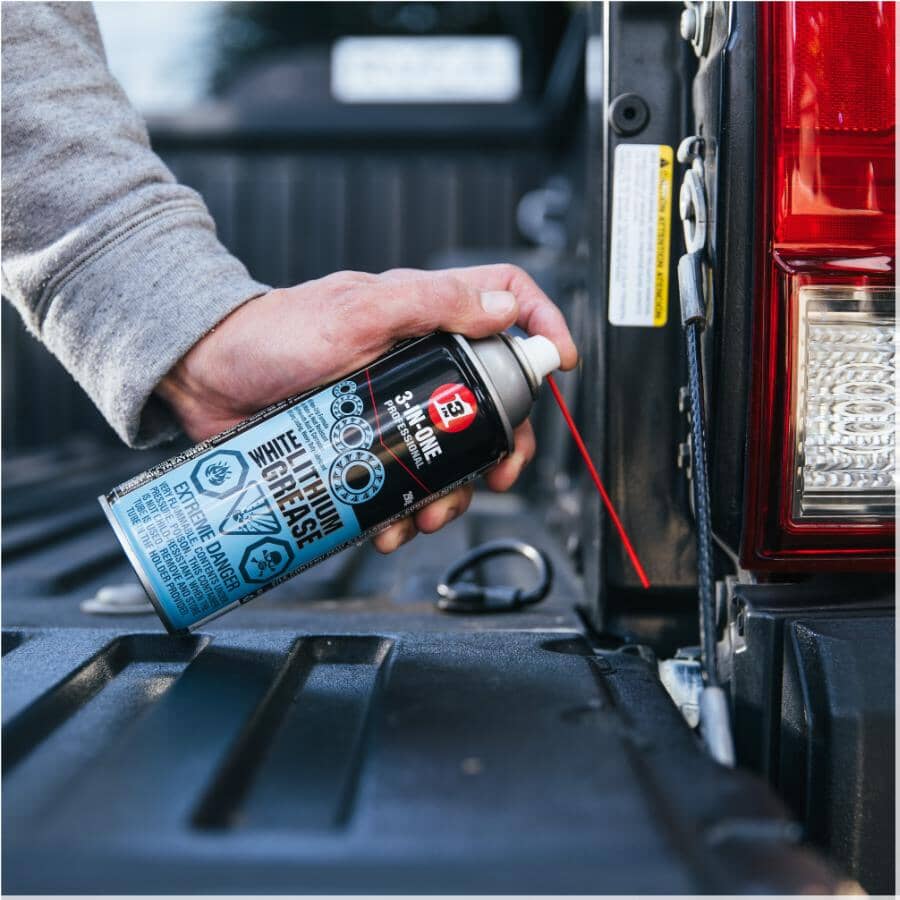 3-IN-ONE Professional White Lithium Grease reduces friction on all your projects while giving you superior protection against rust and corrosion. This water and heat-resistant formulation provides you with long-lasting, heavy-duty lubrication to reduce friction and wear in places where there is metal-to-metal contact. The durable, non-drip, water-resistant formula sprays on evenly as a liquid and sets dry leaving a thick coating that won’t melt, run, wash off or freeze, making it ideal for applications both inside and outside.