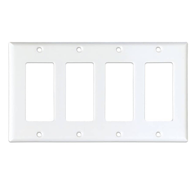 White Plastic 4-Gang Decorator Wall Plate is backordered and will ship as soon as it is back in stock.