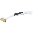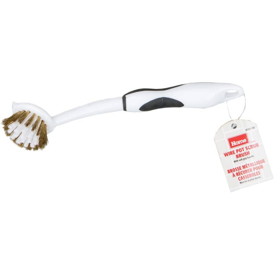 The 10" wire and nylon bristles of this soft grip pot and pan scrub brush is ideal for scrubbing stainless steel pots and BBQ grills. The crimped brass fibres and built in scraper is great for removing burnt on food and the plastic reinforced handle has a convenient hang-up hole.