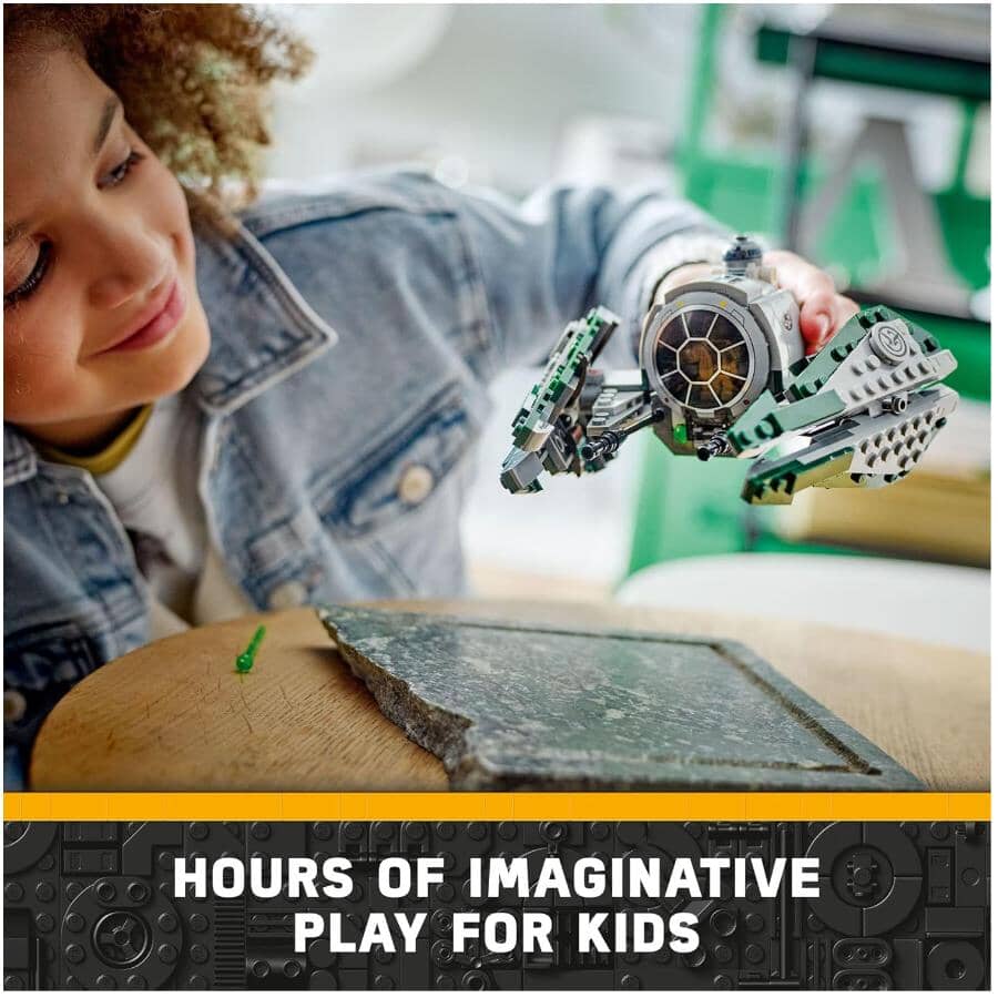 Kids can explore a galaxy far, far away with 2 popular Star Wars characters and this detailed LEGO brick-built model of Yoda’s Jedi Starfighter (75360). This Star Wars collectible for kids features an opening cockpit for the LEGO Master Yoda minifigure, space for the LEGO R2-D2 droid figure, 2 spring-loaded shooters and adjustable wings for flight and landing. Add an extra dimension to your young Jedi’s fun, creative experience with the LEGO Builder app, featuring instructions and interactive zoom and rotate viewing tools to help them build with confidence. This building toy set makes an exciting birthday gift for 8 year old kids or any Star Wars: The Clone Wars fan, and it’s part of a huge assortment of LEGO Star Wars construction sets to delight Star Wars fans of all ages (each sold separately).